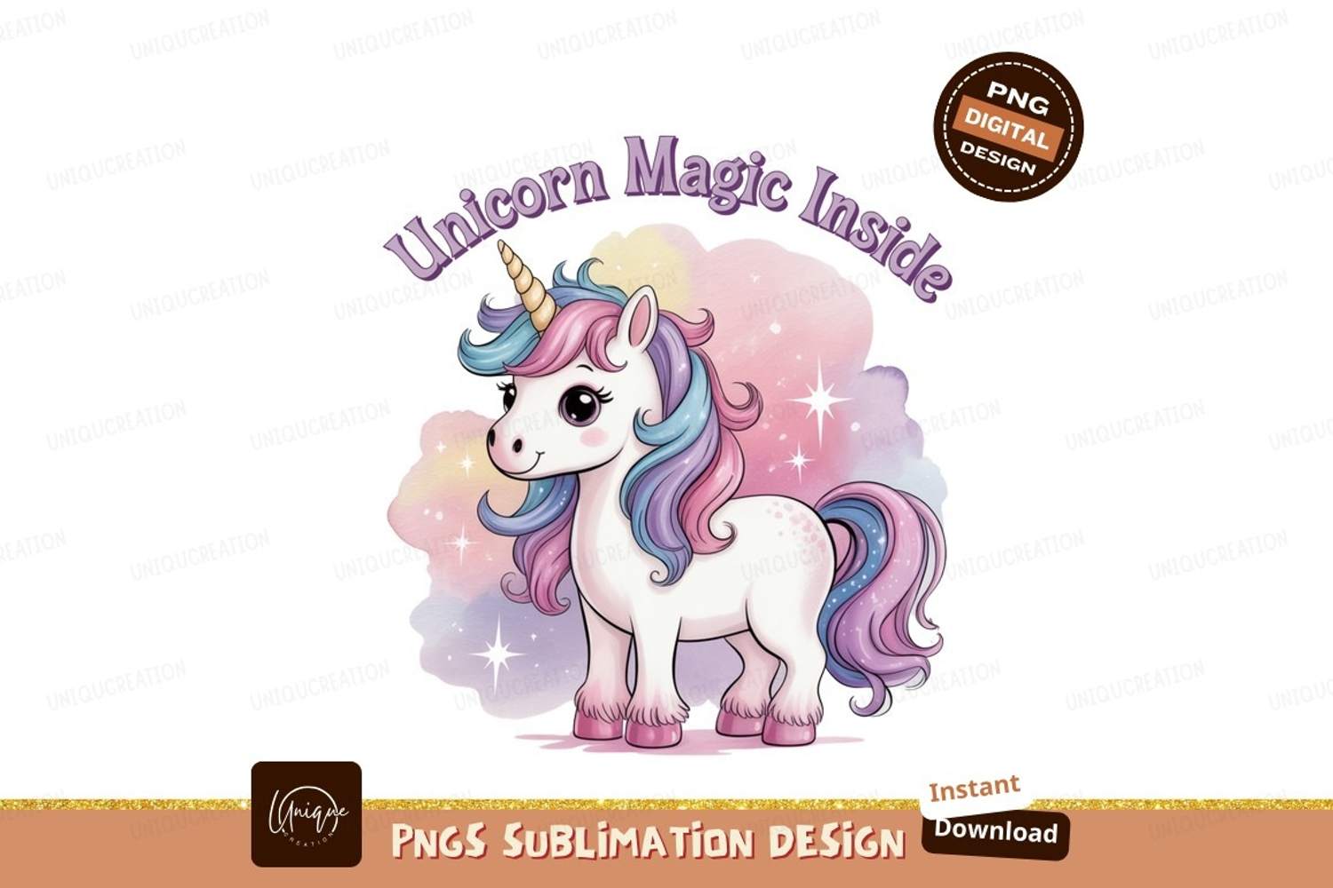 Cute unicorn with colorful mane and tail magic fantasy example image 1