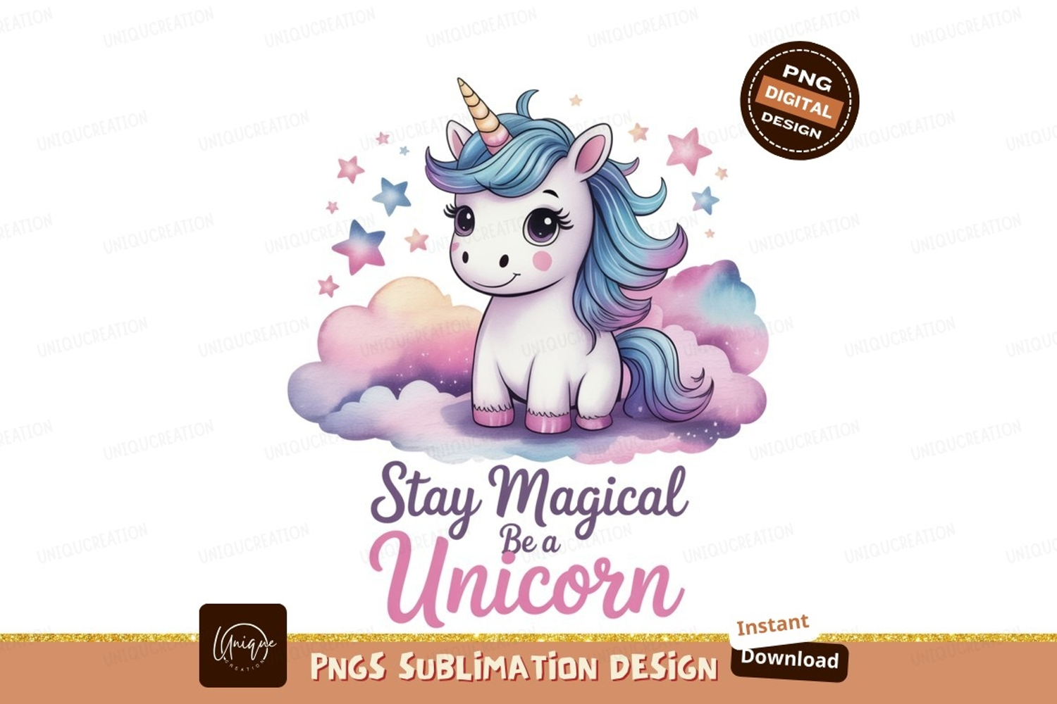 Cute unicorn on clouds with stars magical fantasy example image 1