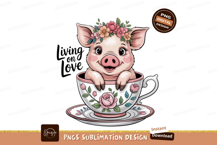 Similar Design Products to Piglet wearing flowers in teacup pink floral