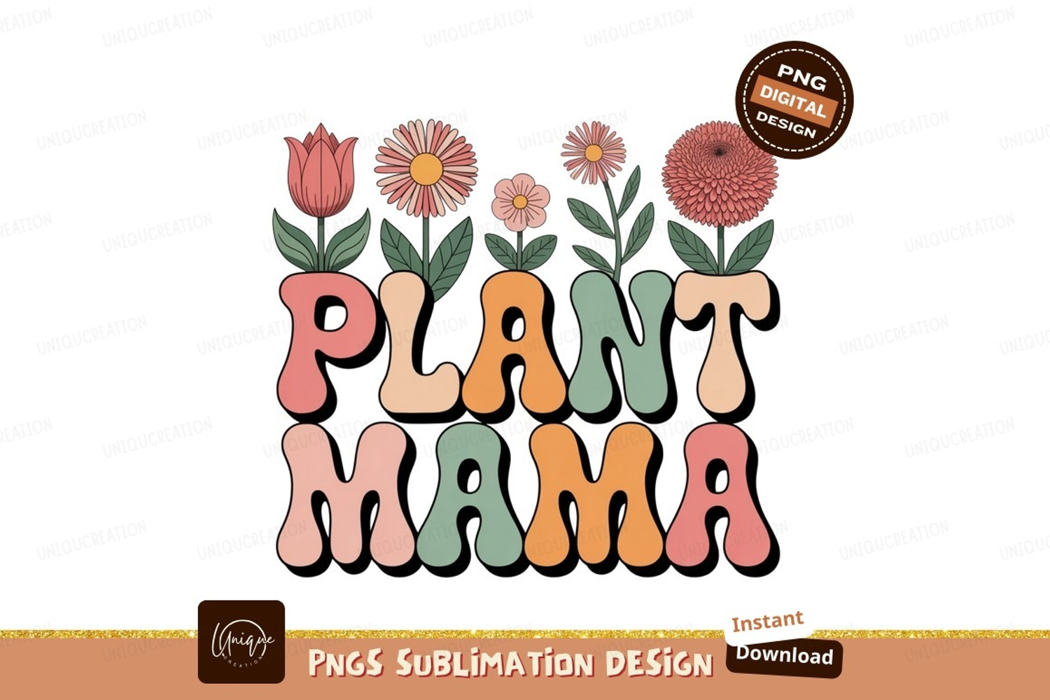 Groovy flowers and plant mama text plants retro