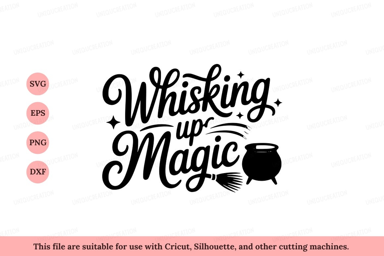 Lettering Illustration Text Black Magic White Broom Cauldron Stars Whisking