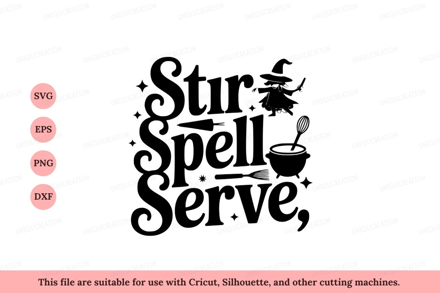 Fantasy Halloween Silhouette Magic Witch Cooking Cauldron Spell Potion Whisk