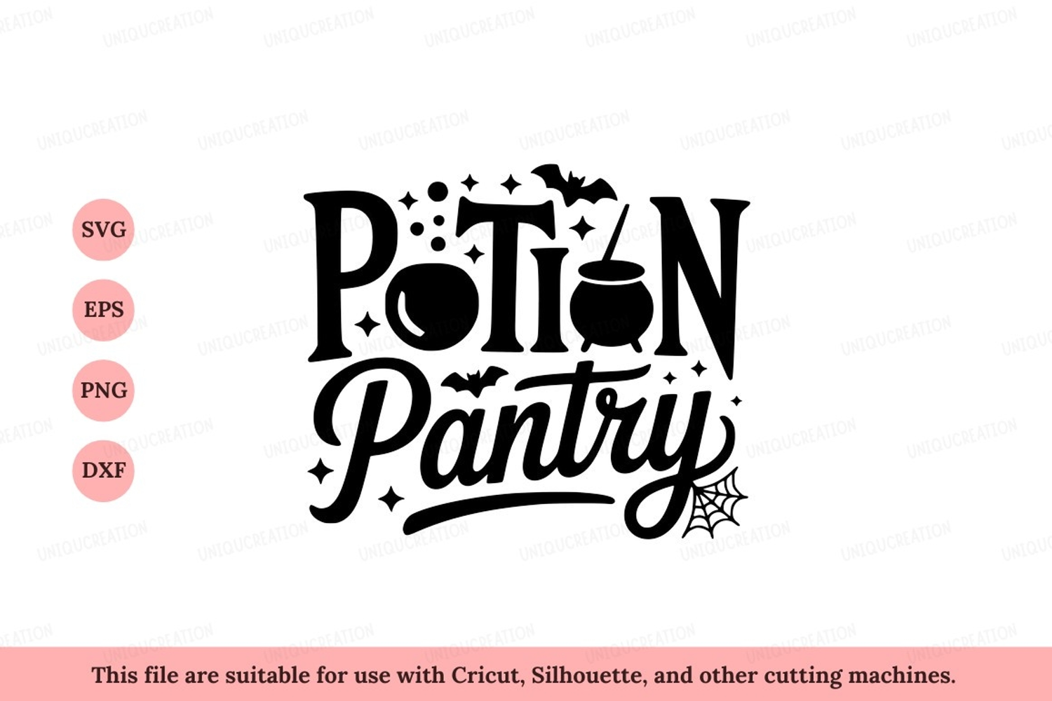 Text Halloween Black White Cauldron Stars Potion Bats Spiderweb Pantry