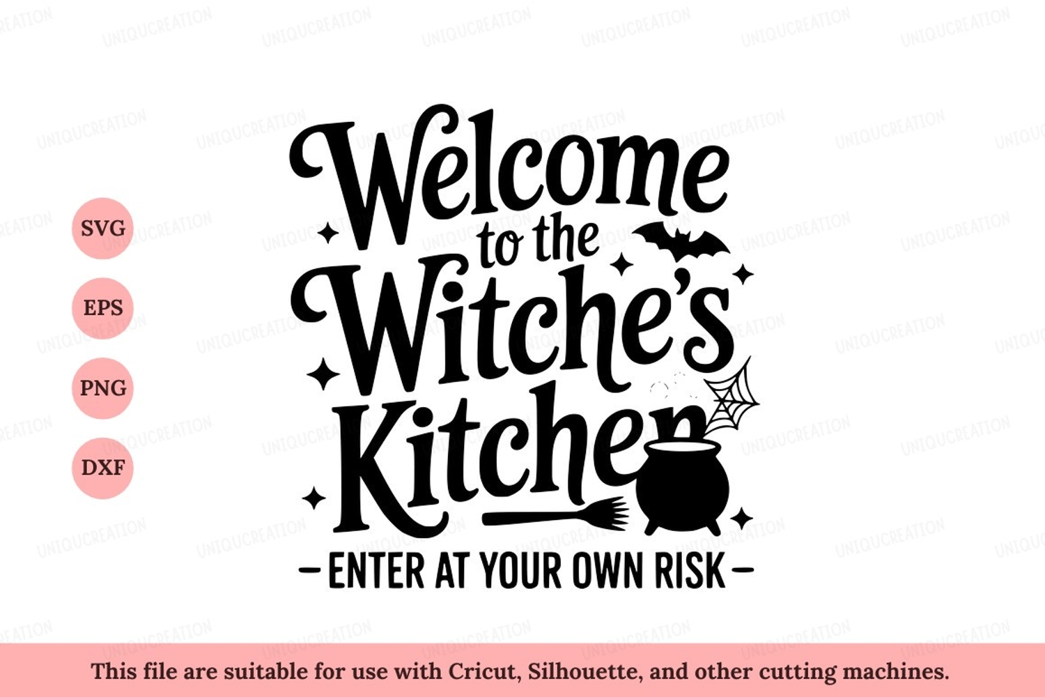Welcome Witches Kitchen Bat Cauldron Broom image example image 1