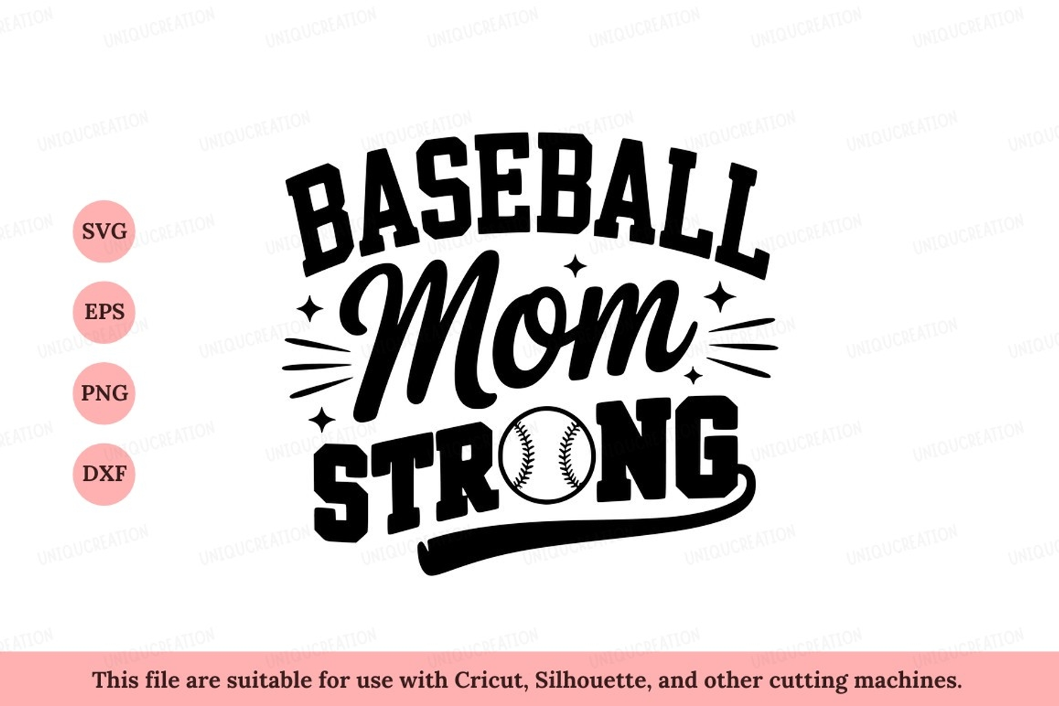 Illustration Text Family Baseball Black Strong Graphic Sport White Mom
