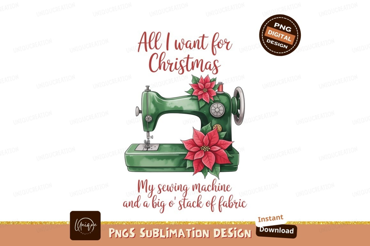 Similar Design Products to Green sewing machine poinsettias fabric image