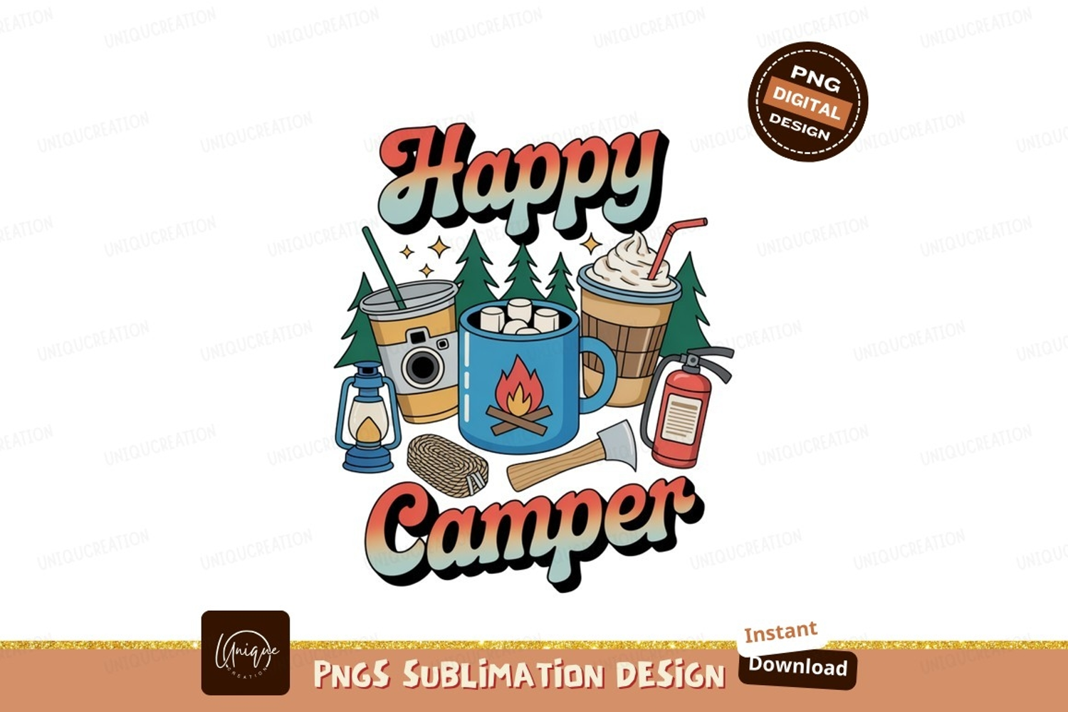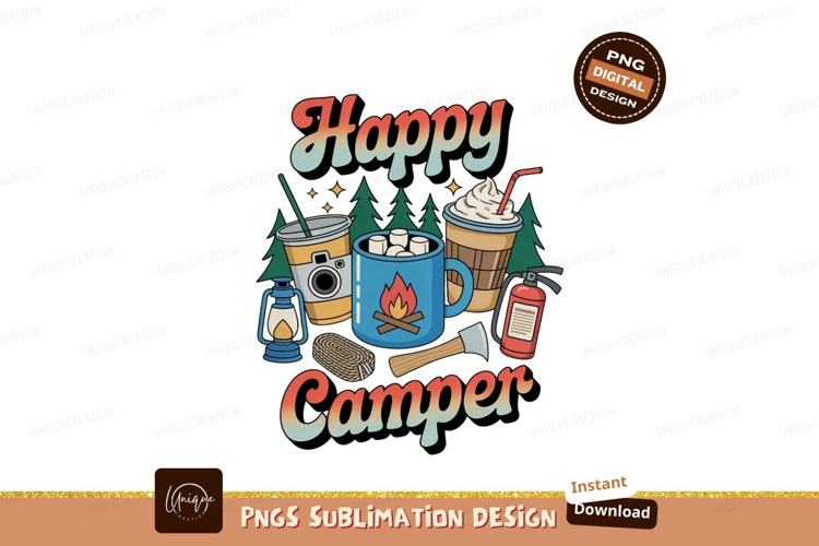 Happy camper drinks and gear camping marshmallows example image 1