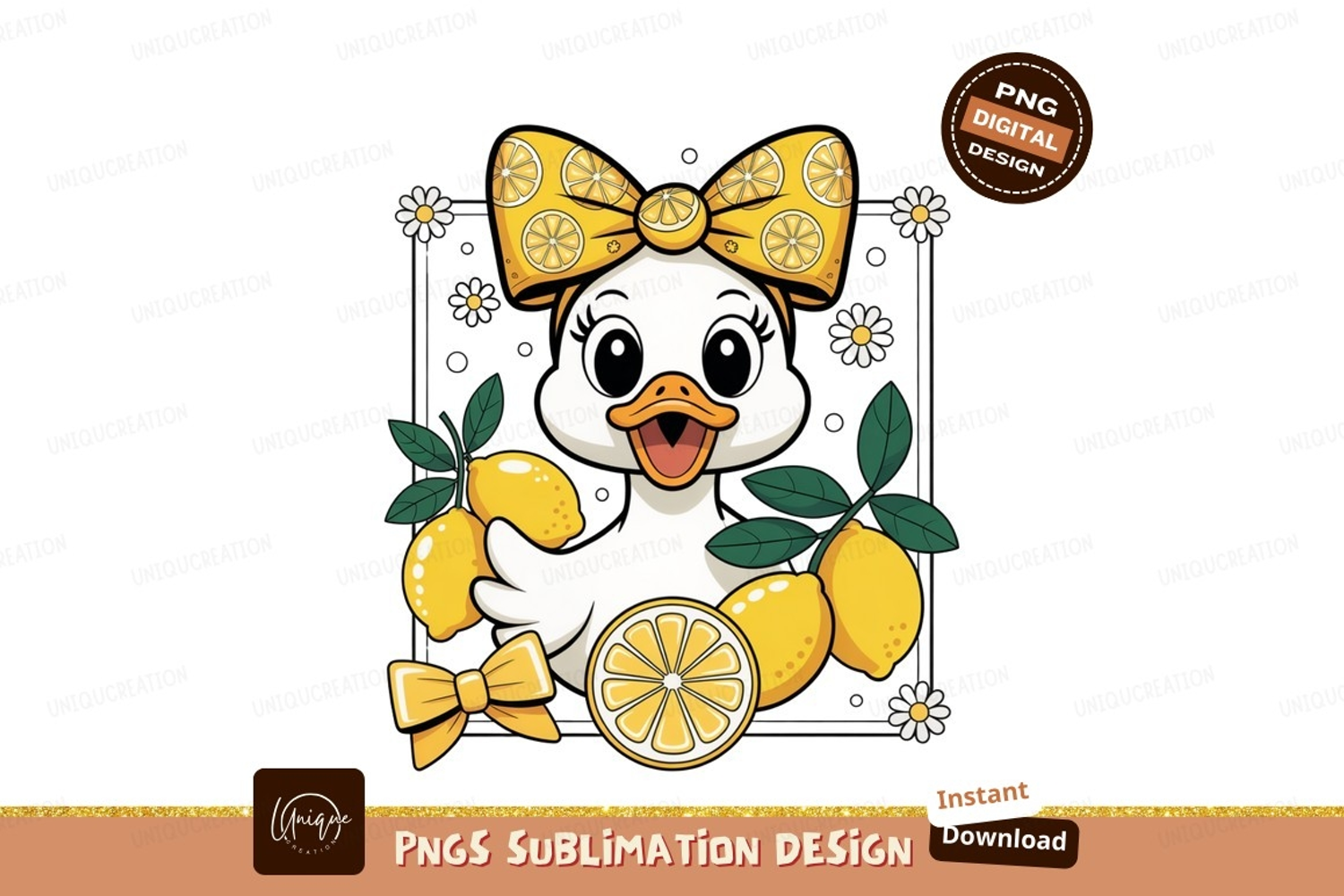 Cute duck with lemons and bow cartoon yellow example image 1