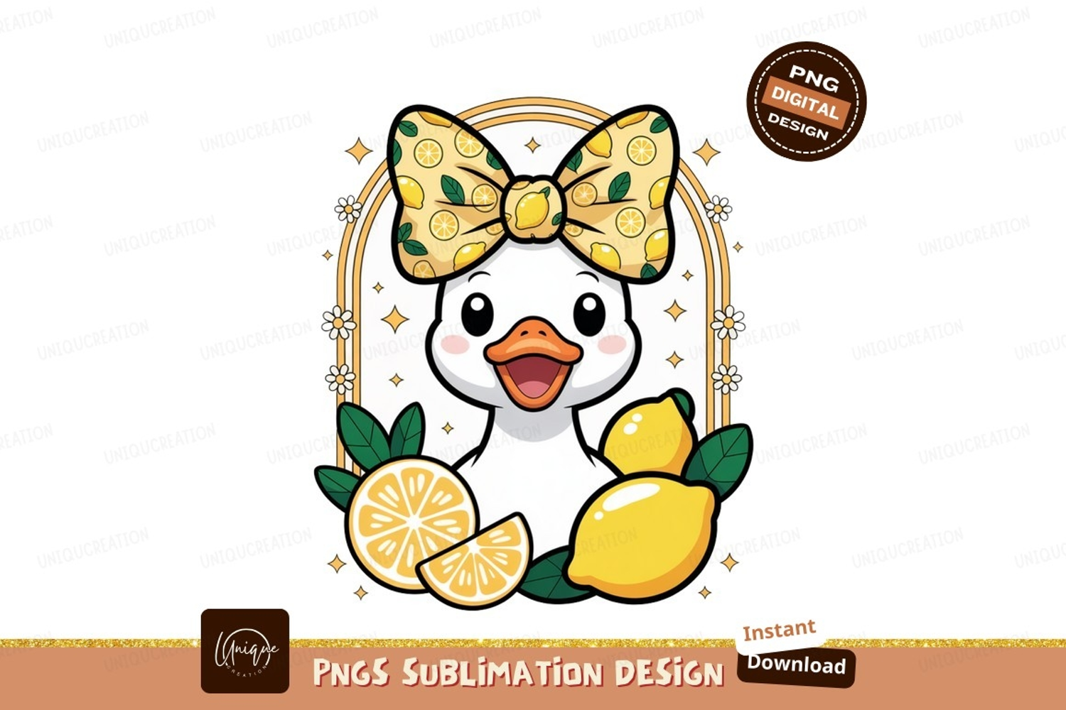 Cute duck with lemon bow and fruit yellow example image 1
