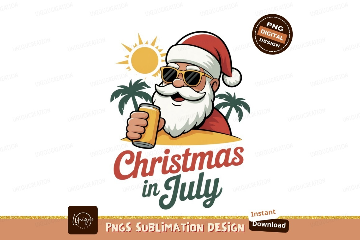 Santa drinking beverage on tropical beach claus sunglasses example image 1