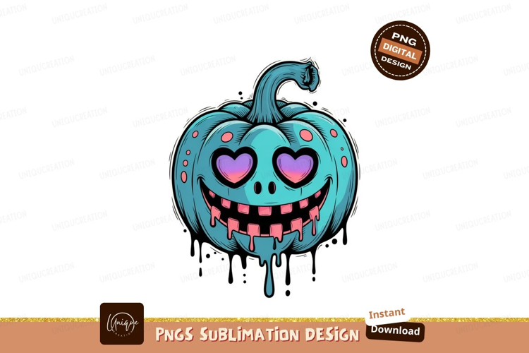 Blue grinning pumpkin with heart eyes halloween spooky example image 1