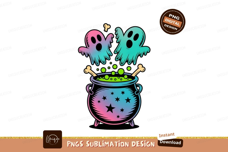 Pink Teal Ghosts Brew Potion halloween cauldron example image 1