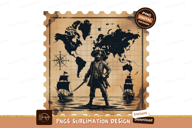 Similar Design Products to Pirate captain sword sailing ships world map image