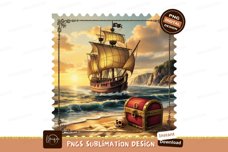 Similar Design Products to Galleon sailing ocean sunset treasure chest image