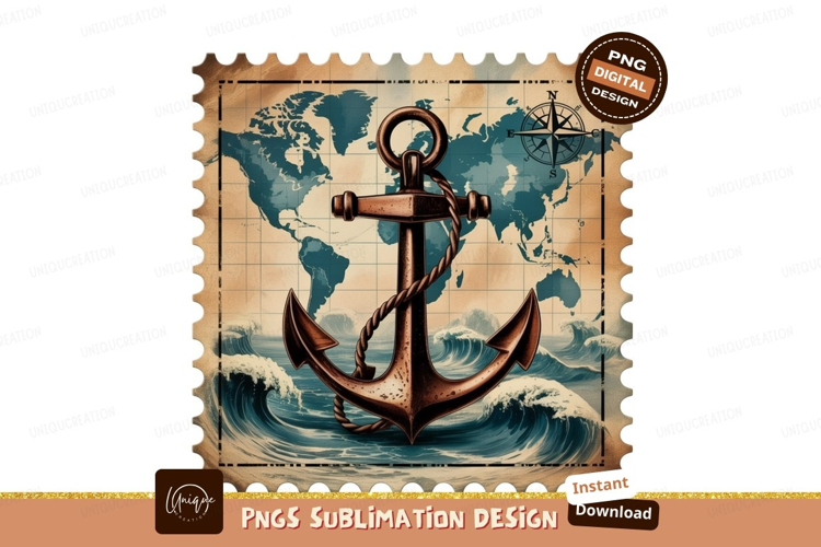 Adventure Travel Sea Nautical Map Anchor Compass Waves Vials Syringes