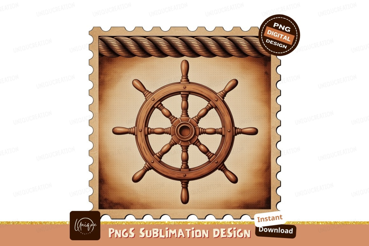 Wooden ship wheel nautical stamp helm example image 1