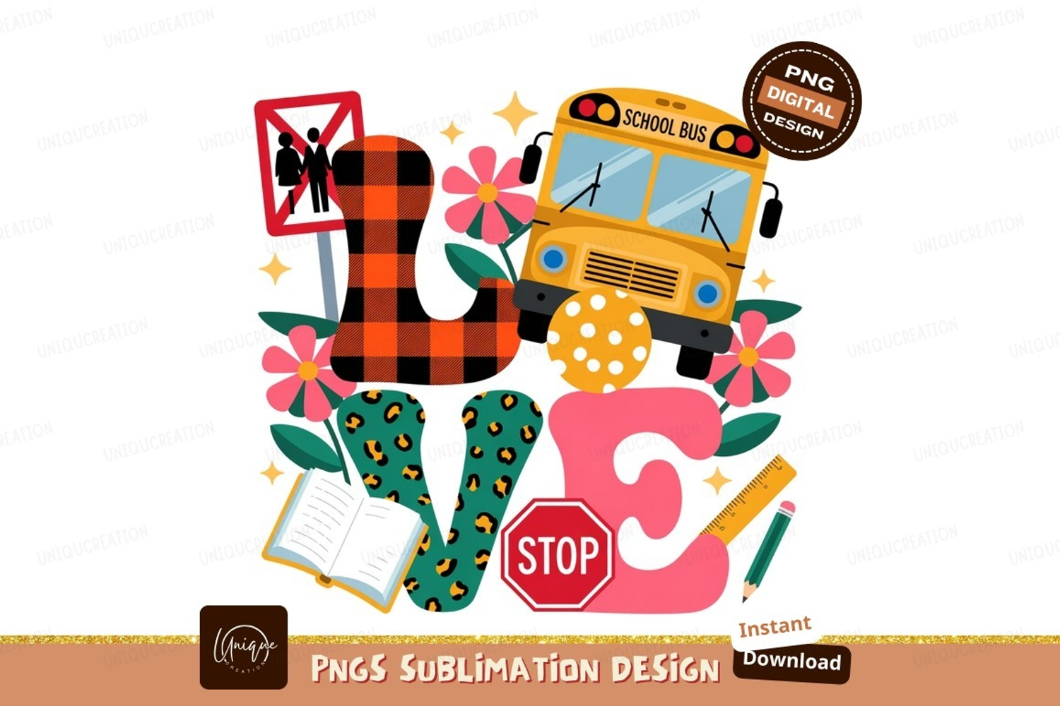 Similar Design Products to School bus flowers book stop sign yellow pink