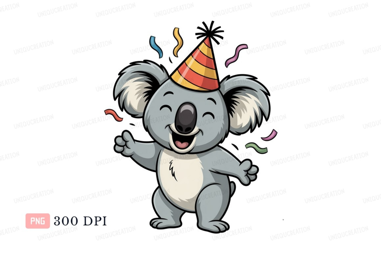 Cartoon Animal Party Cute Happy Celebration Confetti Koala Hat Festive