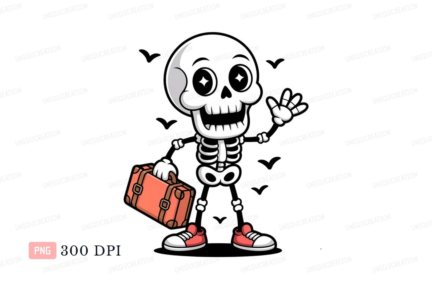 Similar Design Products to Cartoon skeleton holding luggage travel bones