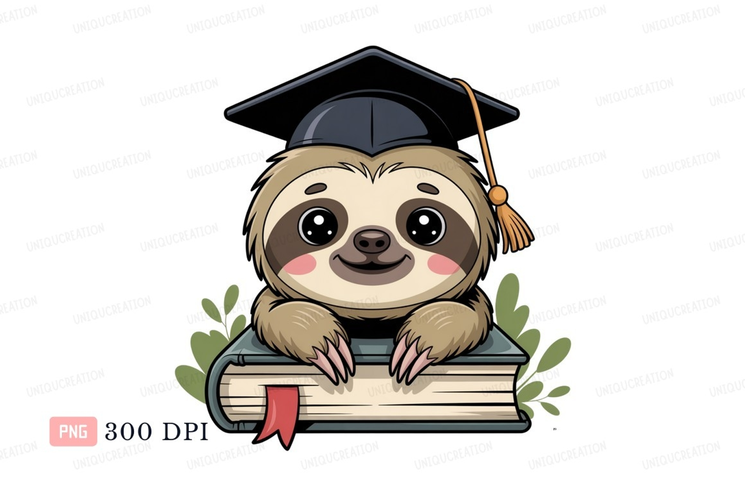 Book Black Cute Leaves Red Cap Graduation Sloth Tassel Bookmark