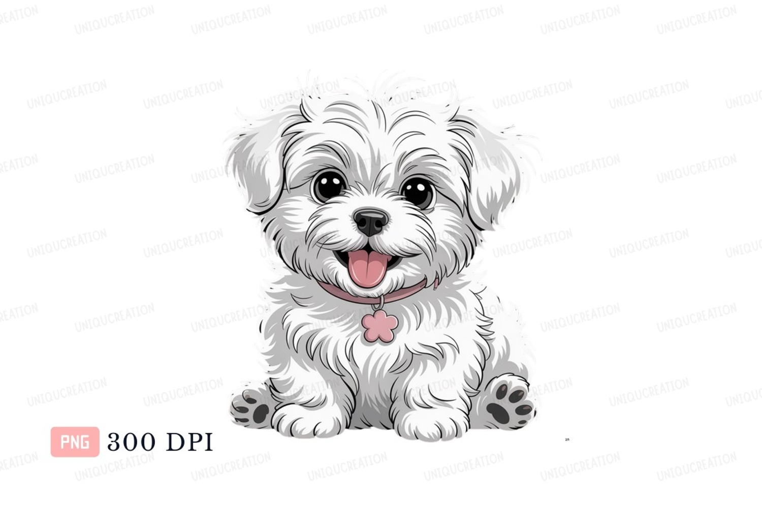Similar Design Products to Fluffy white puppy wearing pink collar image