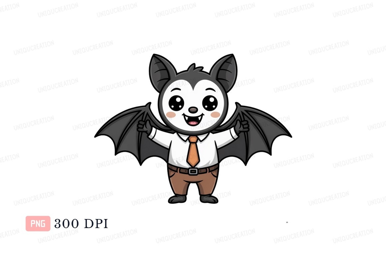 Cute bat wearing shirt tie and pants cartoon animal example image 1