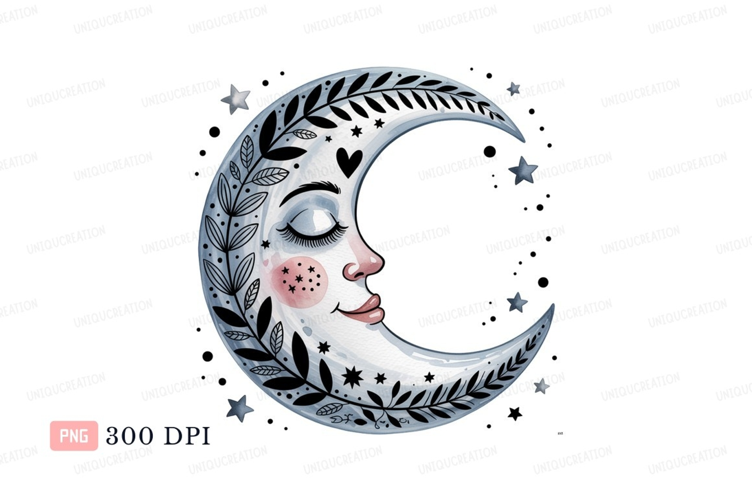 Similar Design Products to Crescent moon face with floral adornments sleeping