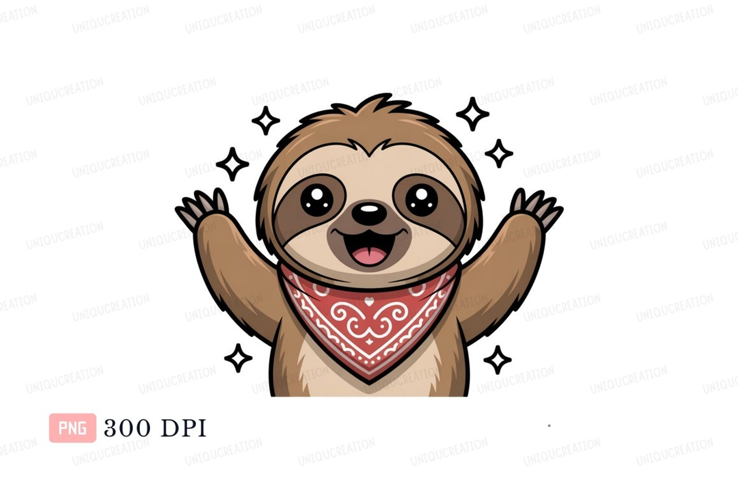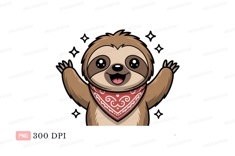 Cartoon Animal Cute Happy Friendly Bandana White Red Waving Sloth