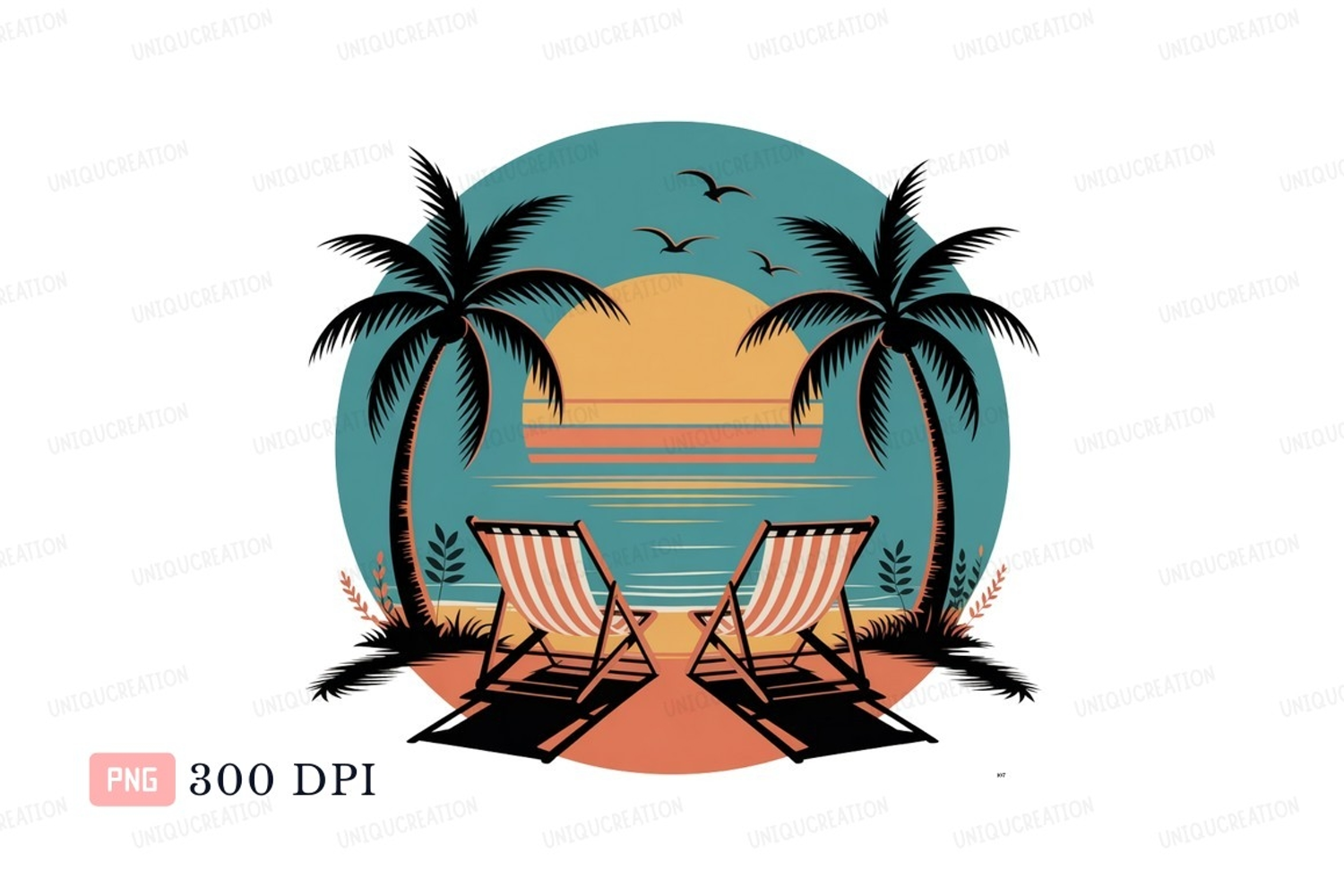 Similar Design Products to Tropical beach chairs sunset scene palm trees