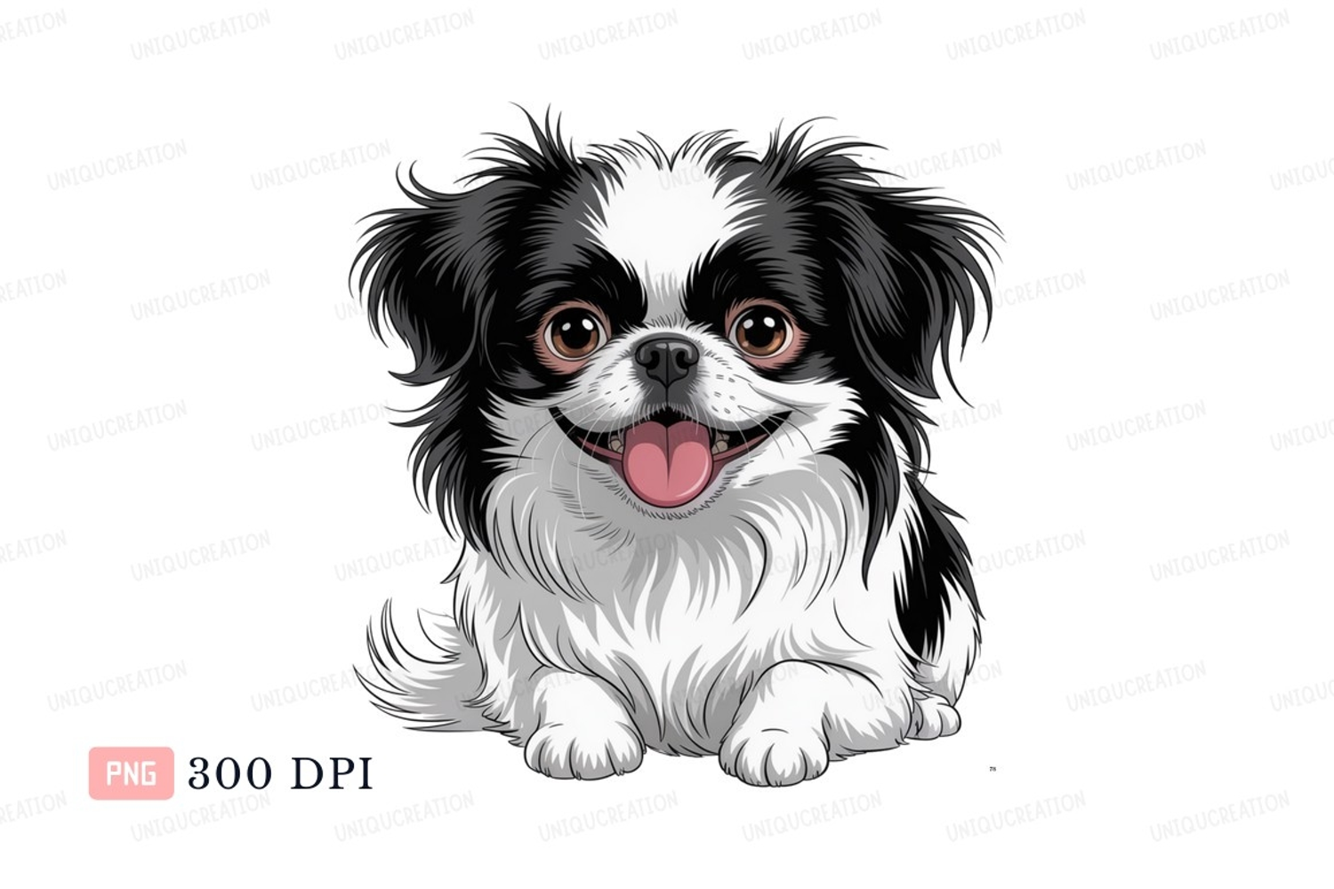 Similar Design Products to Black white fluffy dog happy image