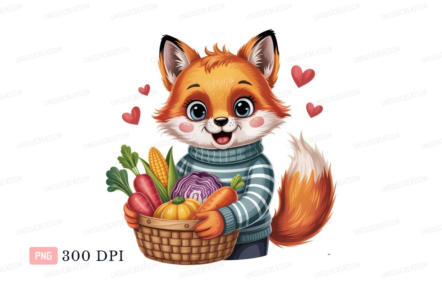 Similar Design Products to Cute fox holding basket of vegetables animal character