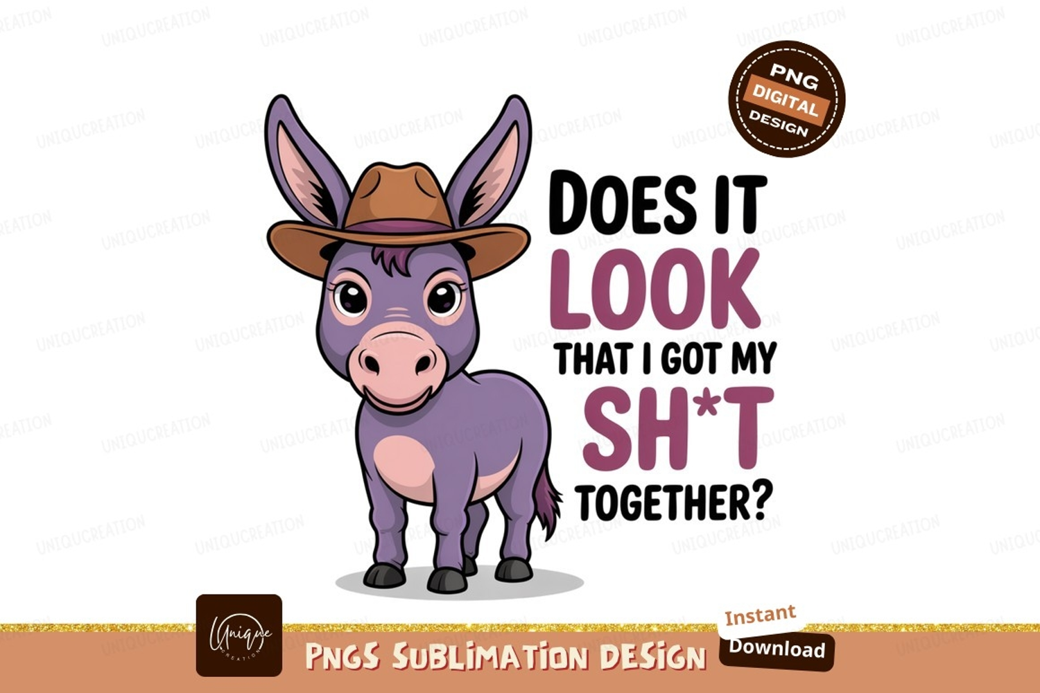 Illustration Text Cartoon Funny Cowboy Purple Hat Donkey Sublimation Frappe
