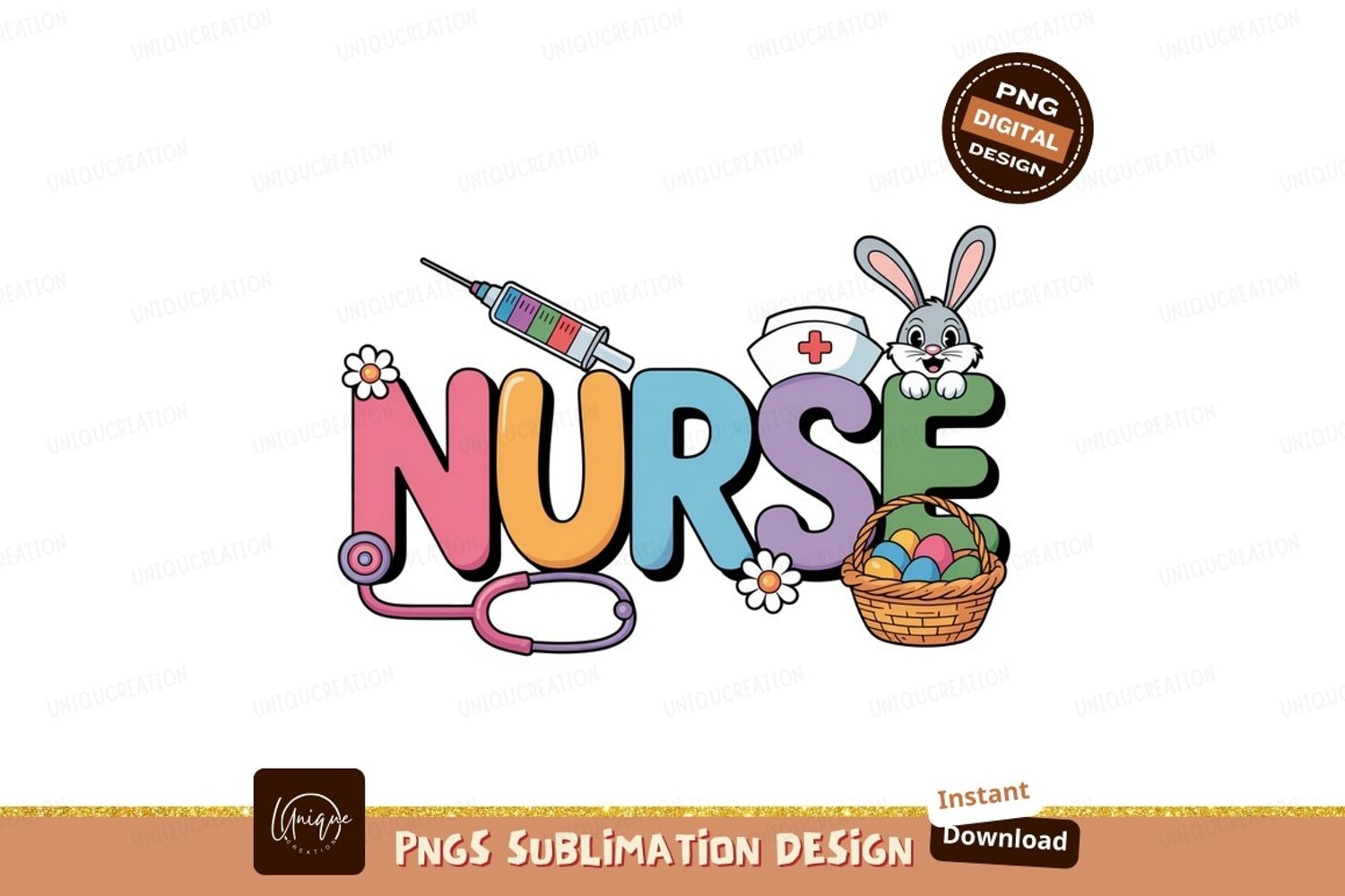 Colorful nurse text with easter bunny and eggs syringe example image 1