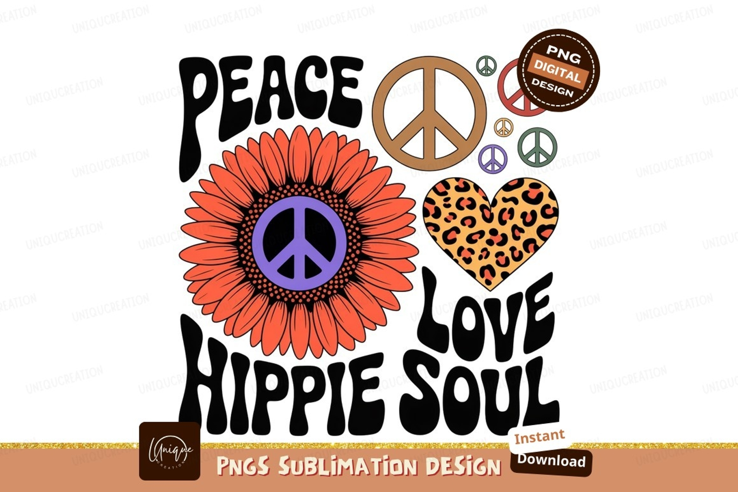 Orange sunflower peace heart leopard print image