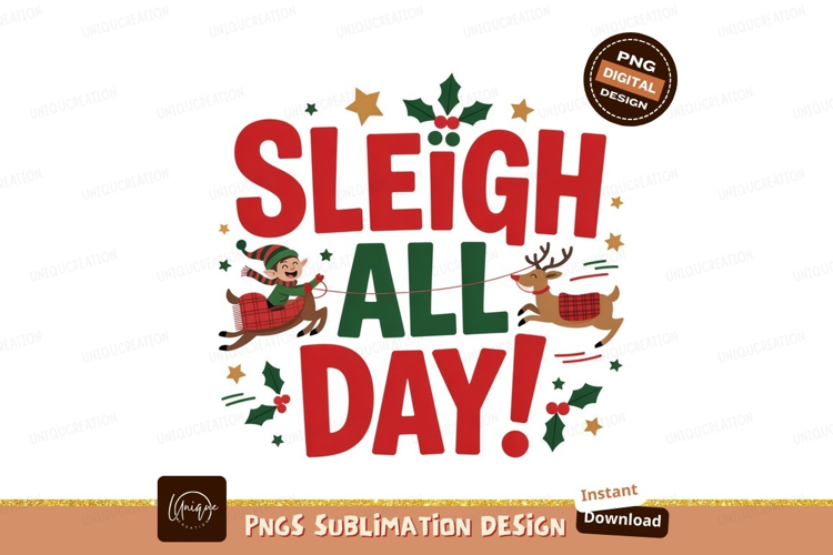Sleigh all day festive holiday graphic christmas reindeer example image 1