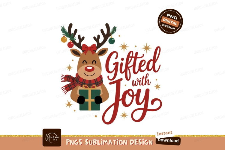 Festive reindeer holding gift with holiday text christmas example image 1