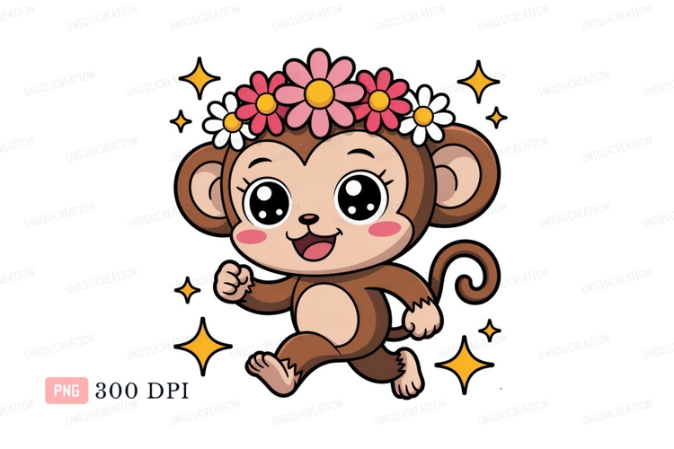 Cute monkey wearing flowers animal cartoon example image 1