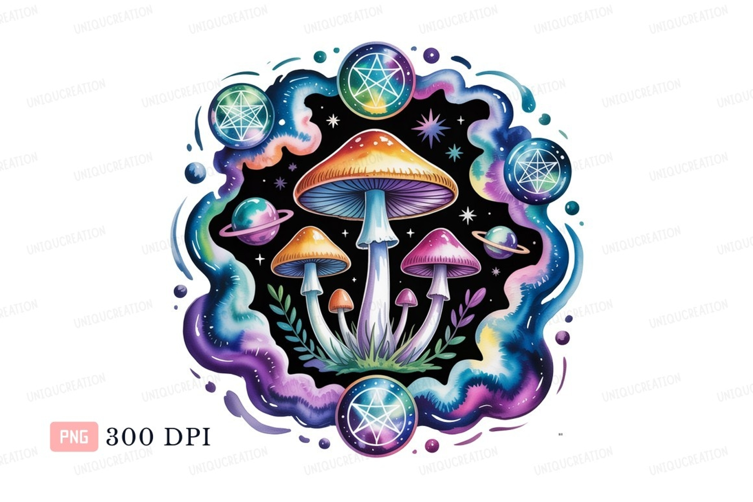 Psychedelic mushrooms cosmic swirl stars example image 1