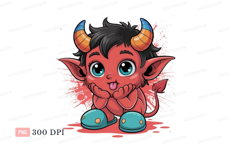 Cartoon Playful Fantasy Cute Horns Blue Red Eyes Devil Tongue