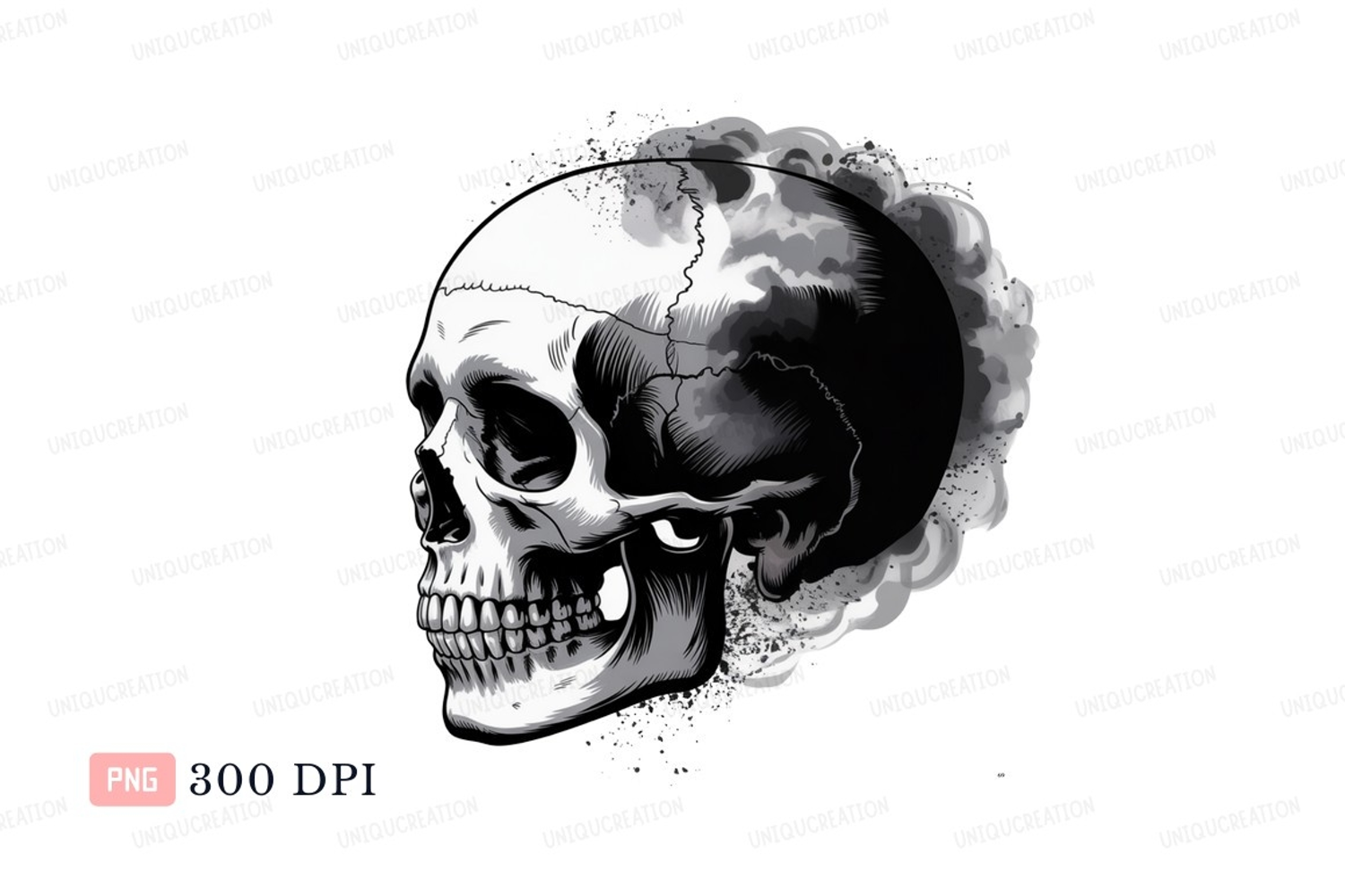 Grayscale Skull Smoke Effect monochrome dark example image 1