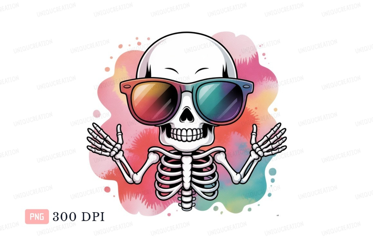 Skeleton wearing colorful sunglasses bones spooky example image 1