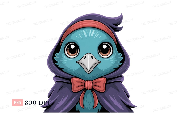 Illustration Character Cartoon Cute Purple Blue Bird Bow Red Cloak