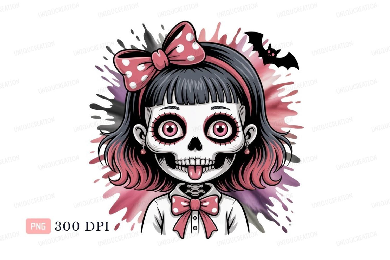 Cartoon Halloween Cute Pink Skull Dot Girl Bow Polka Creepy