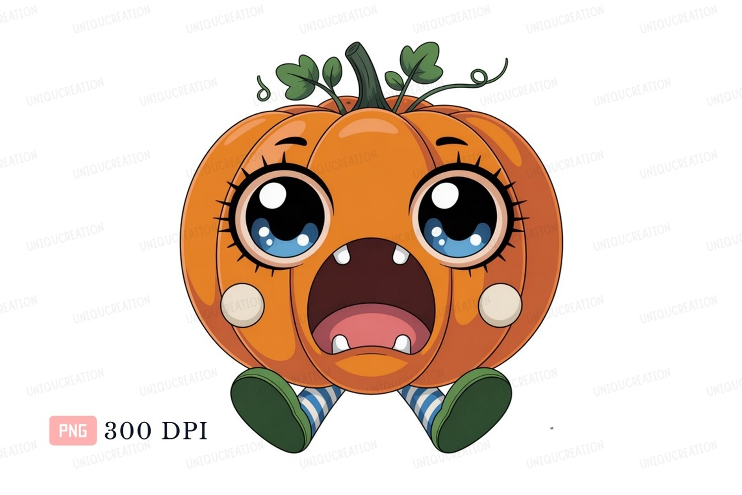 Character Open Cartoon Halloween Orange Blue Pumpkin Eyes Mouth Surprised