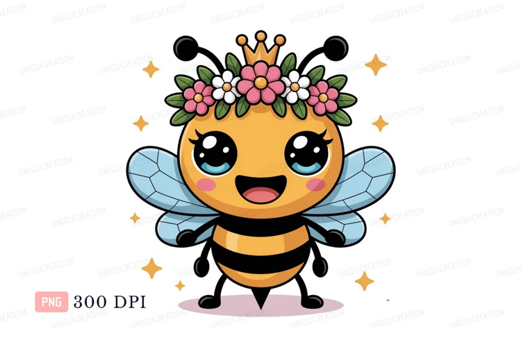 Cute bee queen with flower crown and stars flowers example image 1