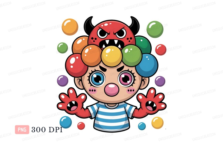 Similar Design Products to Cartoon character with devil head and colorful balls