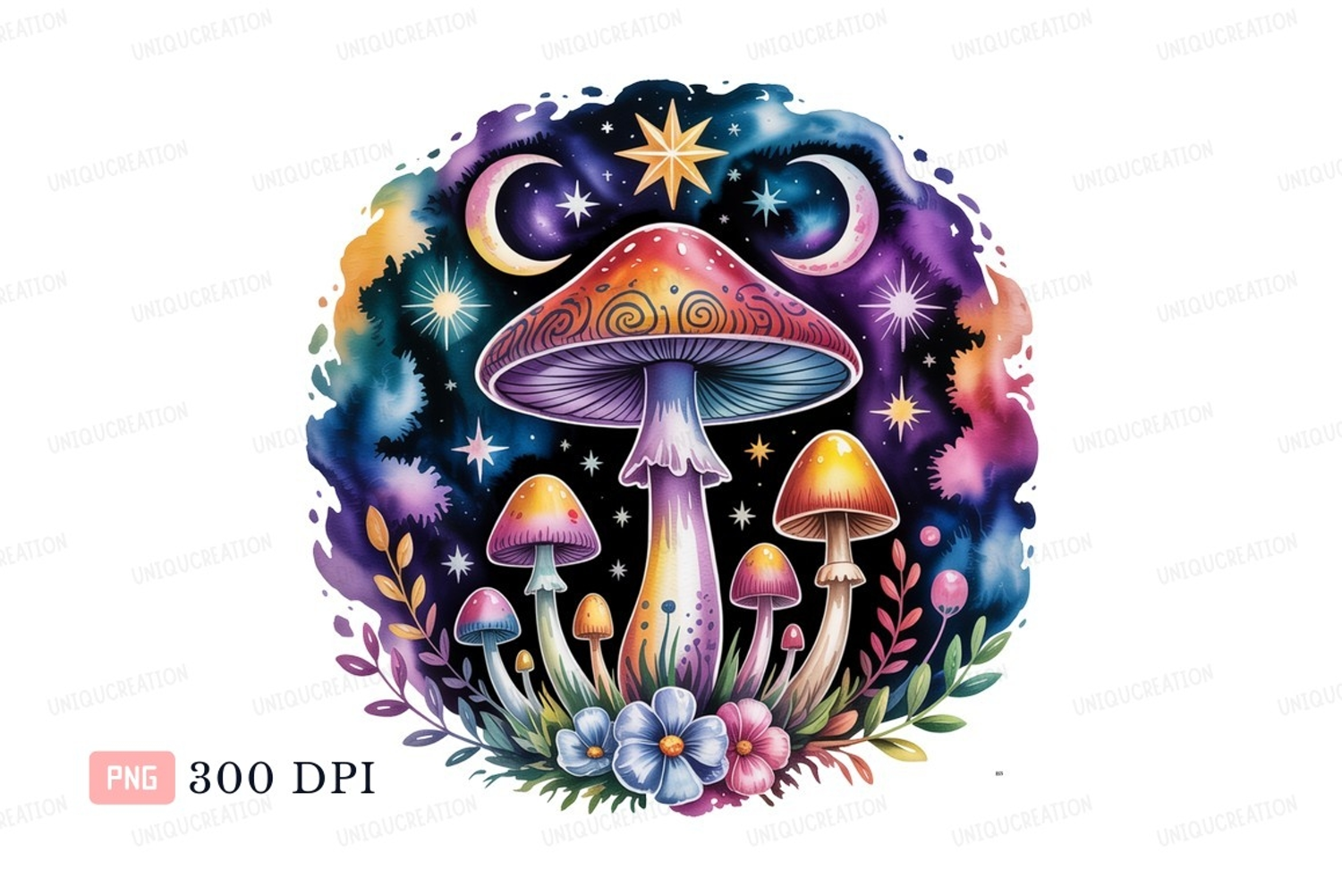Psychedelic mushrooms celestial fantasy art stars
