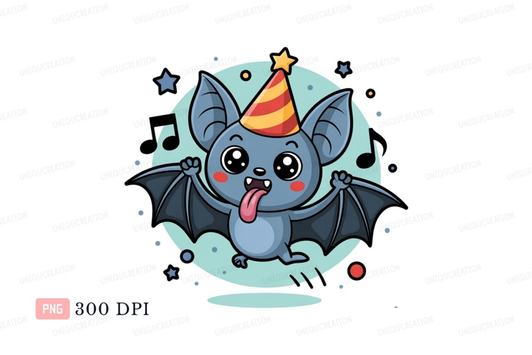 Cute bat wearing party hat cartoon example image 1