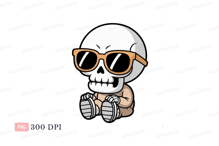 Cute skeleton wearing sunglasses cartoon black example image 1