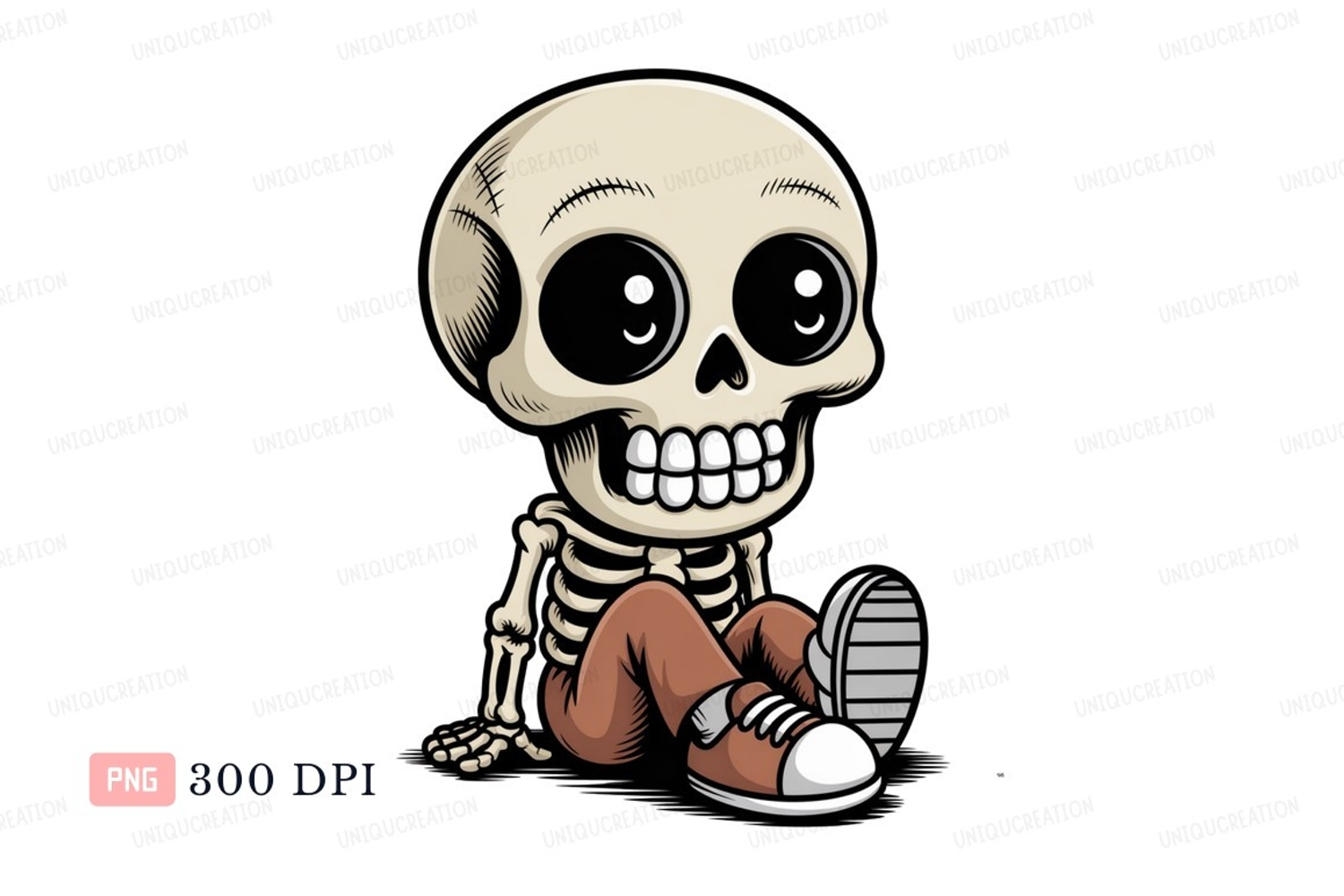 Cartoon skeleton sitting with big eyes cute spooky example image 1